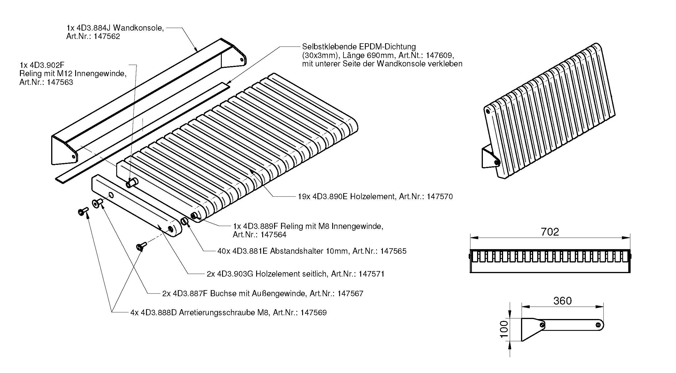 Klappbank aus Echtholz, Furnier: doussie